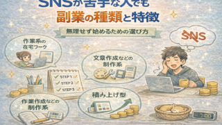 SNSが苦手でも副業はできる副業というと、SNSで発信したり、多くの人とつながったりするイメージを持つ方もいるかもしれません。しかし、SNSが得意でなくても取り組める副業は数多くあります。「発信が苦手」「人前に出るのが不安」「交流がストレス...